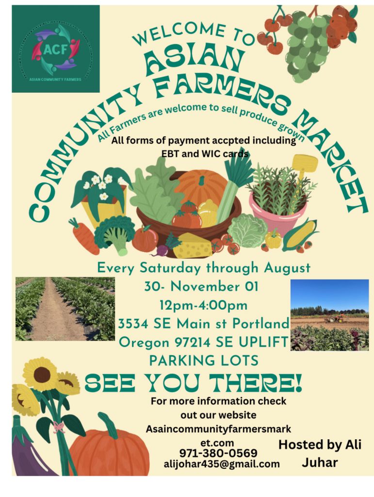 The Asian Community Farmers Market brings together local farmers, families, and community members to celebrate fresh, healthy food and sustainable agriculture. Our market provides access to high-quality fruits, vegetables, and locally grown products while supporting small farmers and community growers. By connecting producers directly with customers, we help strengthen the local food system and promote healthier communities. The market also creates opportunities for immigrant and refugee farmers to share their harvest, build livelihoods, and contribute to Portland’s vibrant food culture. Together, we are growing a stronger, more resilient community through fresh food and local farming.